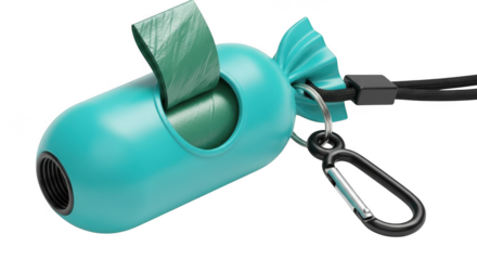 Turquoise dog poop bag dispenser with carabiner clip