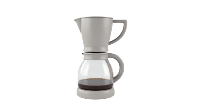 Beige 3D coffee maker with glass carafe, black handle, and minimalist design for brewing coffee