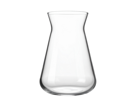 Glass wine decanter with red wine inside, aerating for enhanced flavor and serving, isolated on a transparent background