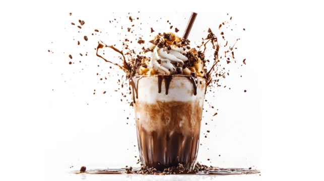Iced Coffee Splash with Ice Cubes isolated on a transparent background