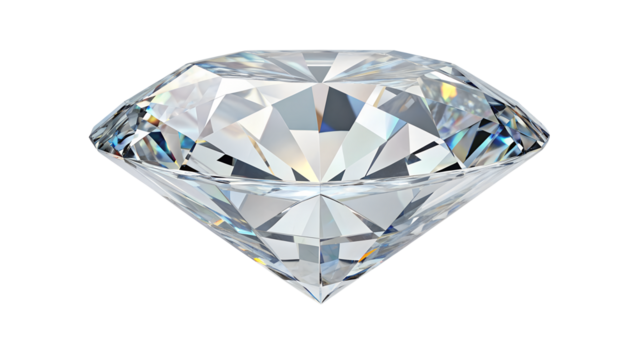 Shiny iridescent diamond gemstone with holographic reflections representing luxury wealth crystal design isolated on white background