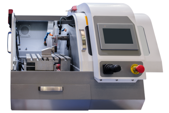 Manufacturing professional metalworking machine. Industrial concept. Programmable modern cnc digital  digital program machine isolated on white background