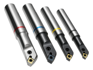 Indexable insert boring bar set with multiple sizes for internal cutting in a CNC machine.