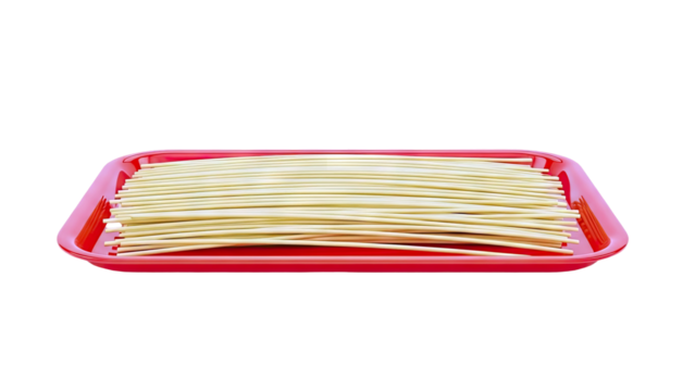 Raw Spaghetti in Red Tray