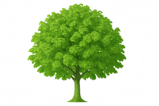 Green deciduous tree with dense foliage isolated on a transparent background, perfect for architectural visualizations or environmental projects