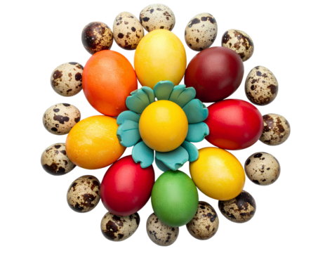Png Set Eggs of different colors placed on a transparent background One flower shaped