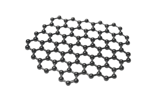 Graphite molecule close up. 3D Molecular model of graphite layer. Graphite consists of layers of carbon atoms, each bonded to three neighbors in a hexagonal, honeycomb-like structure called graphene