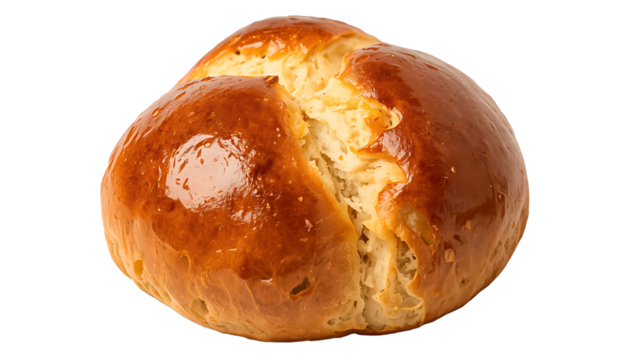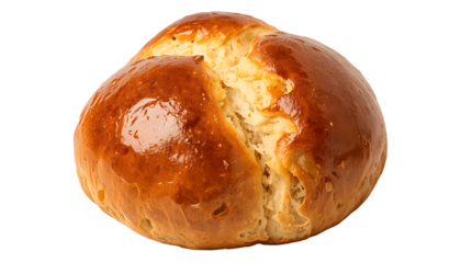 Freshly Baked Glazed Brioche Bun with Golden Brown Crust, Clean Cut-out for Bakery and Food Industry Marketing