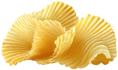 Pile of golden, wavy, ridged potato chips