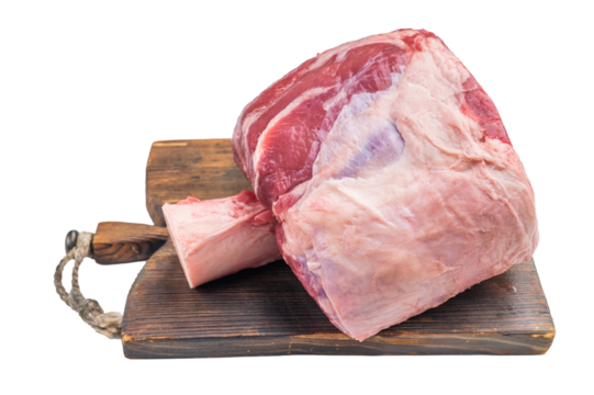 Raw beef shank with bone on wooden board isolated on white background fresh uncooked meat for braising stew and osso buco