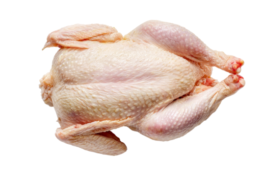 Raw whole chicken for cooking isolated on transparent background