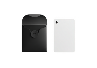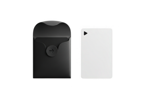 Black minimalist card holder with a white blank card isolated on transparent background