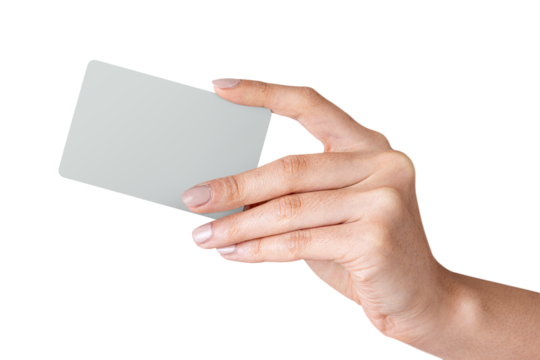 Close up of a person s hand holding a blank white square card for text or design isolated on transparent background