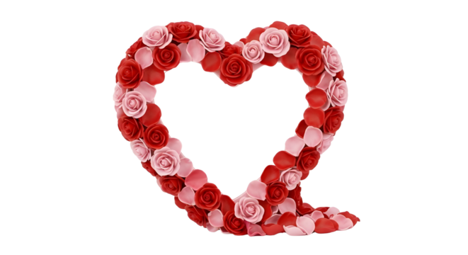 Heart shape made from red and pink roses and rose petals isolated PNG with Transparent Background