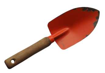 Old-fashioned garden spade resting on a clean white background in soft light, on the transparent background. PNG Format