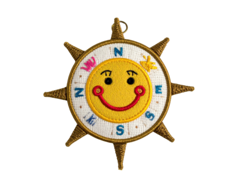 Detailed compass design showcasing cardinal directions with a polished metallic finish on a white background