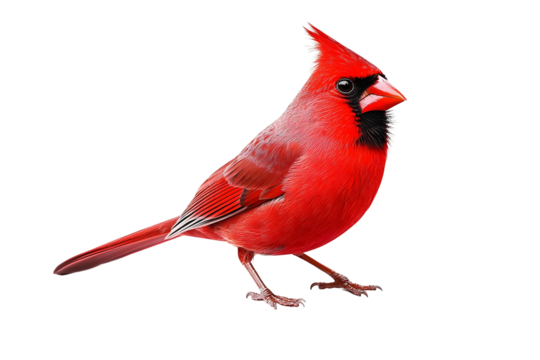 bright red bird standing on white background, pointed beak and vivid plumage, likely cardinal or finch png on transparent background