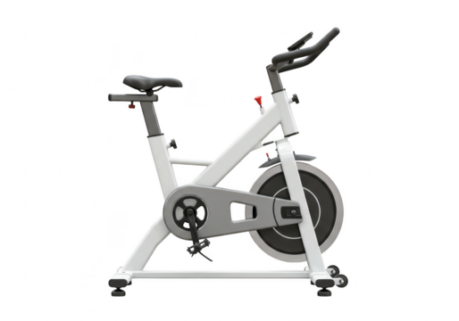 A modern white exercise bike, designed for effective cardiovascular workouts isolated on transparent background