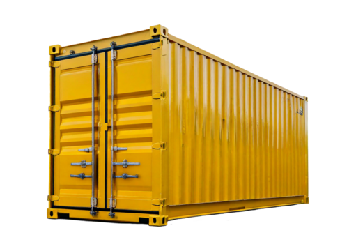 Yellow cargo container isolated on a transparent background