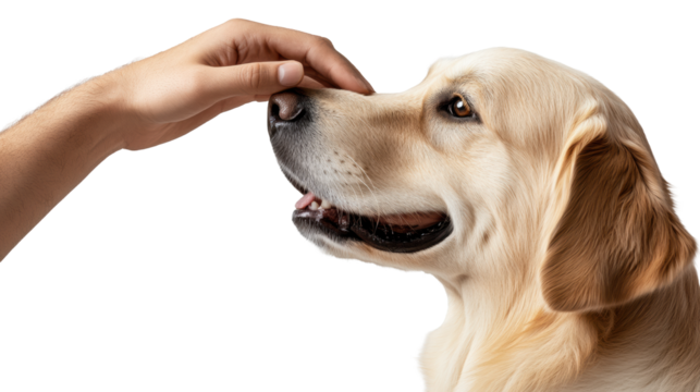Dog with Person's Hand on Transparent Background