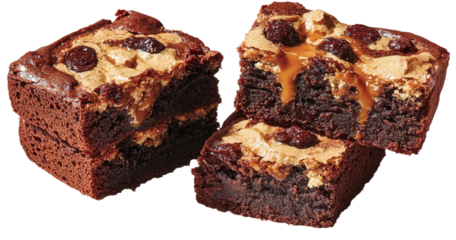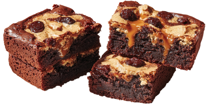 brownies with chocolate chips, carmel,  isolated, transparent, png, background, cut out