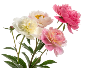 Red and white carnation flowers in a line floral arrangement isolated on white or transparent background