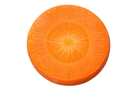 Carrot cross section with a transparent background, vibrant orange hue.