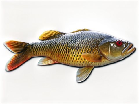 Freshwater crucian carp fish isolated on white background with clipping path. Full Depth of field. Focus stacking. PNG