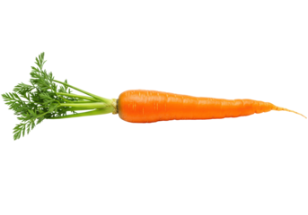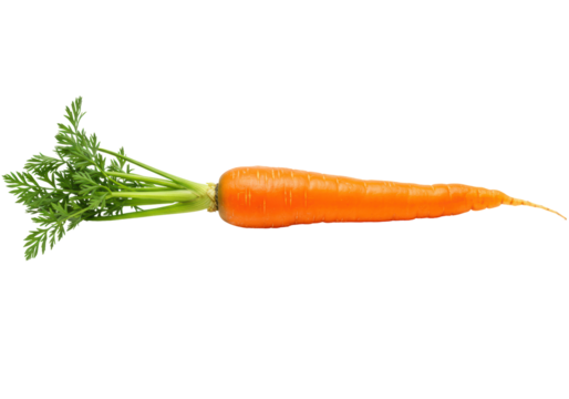 Vibrant orange carrot with green stems isolated on transparent background