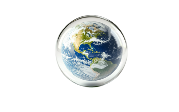 A surreal scene featuring a miniature Earth globe contained inside a transparent structure symbolizing imagination isolated on transparent background PNG