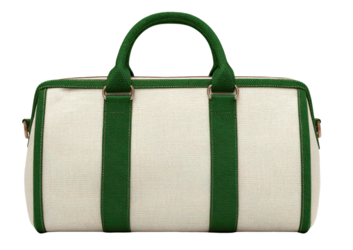 Cream duffel bag with green trim & handles, centered