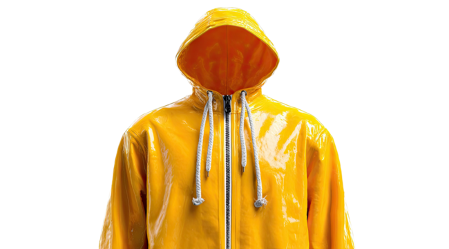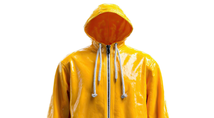 Shiny, bright yellow hooded raincoat, isolated