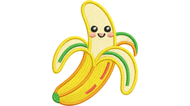 Cute Kawaii Banana Embroidery Style Stitched Textile Patch Icon Illustration.