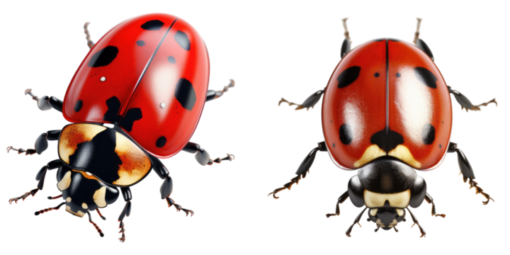 A realistic ladybug with detailed spots on a transparent background