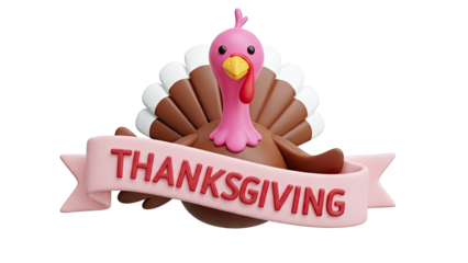 Cute Cartoon Turkey with "Thanksgiving" Ribbon