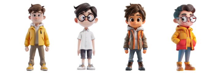 Four Blue Fish Cartoon:  A playful quartet of cartoon blue fish, each with unique expressions and a charmingly chubby physique, bring a splash of whimsy to any project.