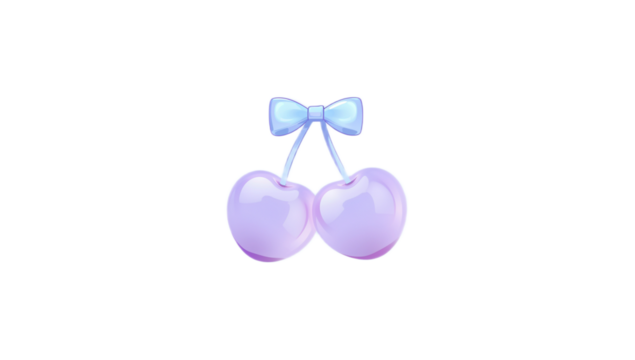 Soft Hued Pastel Purple Cherries Tied Together with a Whimsical Blue Bow, a Delightful and Dreamy Digital Art Piece
