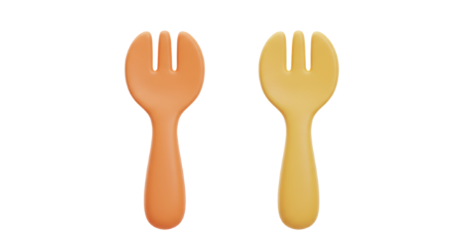 3D high-quality render of spoon and fork cutlery in cartoon plastic style, kitchenware icon, isolated on transparent background