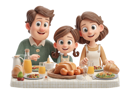 Family Enjoying a Meal Together at a Table with Various Dishes