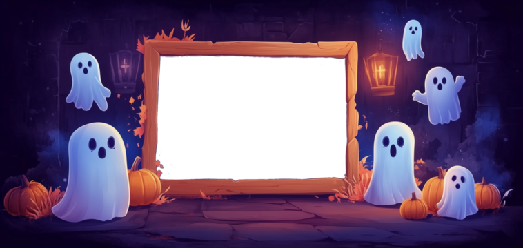 watercolor halloween pumpkins with witch's hat, scary flags, autumn dry leaves. cute illustration on transparent background. clip art cut out stickers for invitations, greeting card, border frame