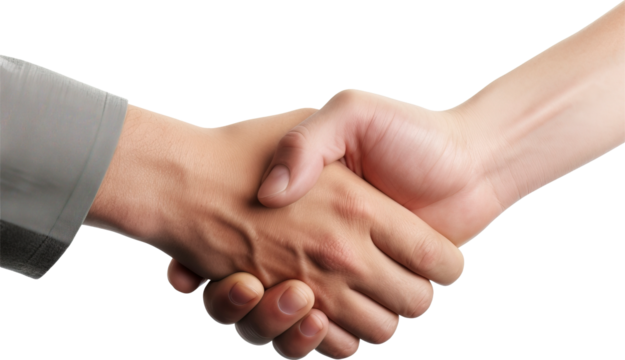 A heart formed by the silhouettes of two hands clasped together, representing unity, support, and companionship against a transparent background