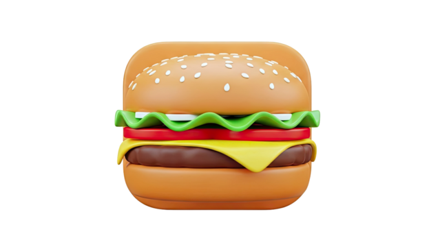 Fast food 3D icons including burgers, fries, donuts, and drinks. Colorful cartoon-style snacks displayed in playful design. Junk food symbols arranged in collection for modern illustration themes.