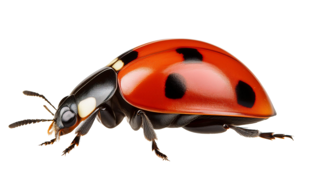 Transparent ladybug illustration featuring red beetle design with black spots