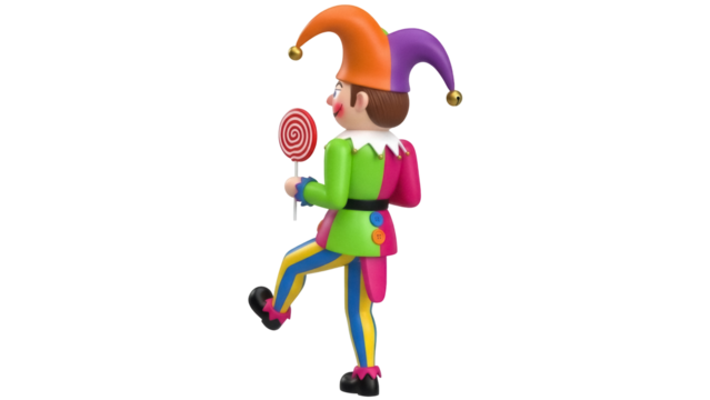 Isolated jester with candy, whimsical clown with colorful costume, playful mascot, figurine