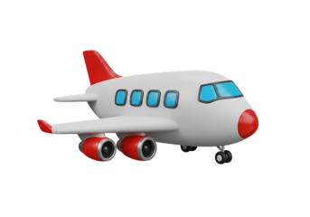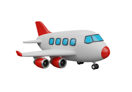 Illustration of cartoon airplane with red accents, isolated on transparent background on transparent background