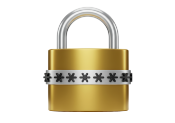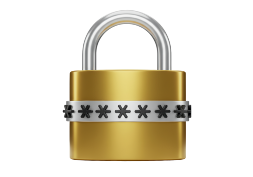 Isolated Golden Password Lock with Asterisks Depicting Security