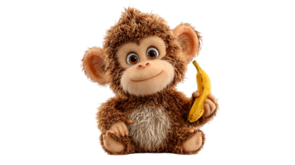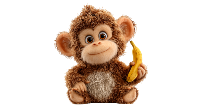 Kachanov cartoon monkey with brown fur happily holding a banana in its hand