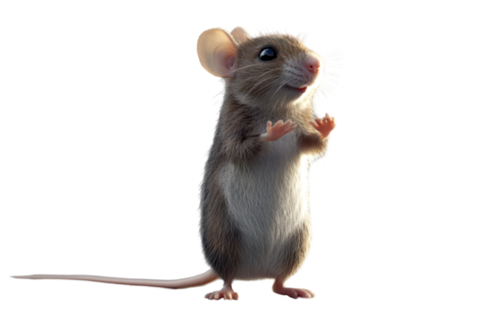 Cute Small Mouse Standing on Its Hind Legs with Expression of Surprise Isolate on Transparent Background, cutout, png