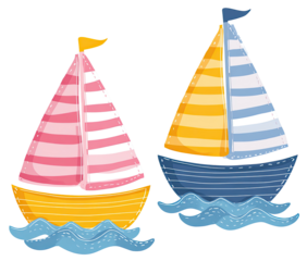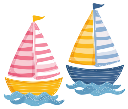 Colorful Cartoon Sailboats on Transparent Background for Fun Designs