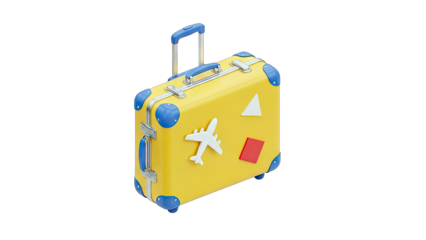 Yellow Suitcase with Airplane Stickers Ready for Travel